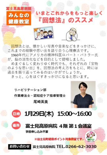 みんなの健康教室「いまとこれからをもっと楽しく回想法のススメ」2026.1.29(木)15:00