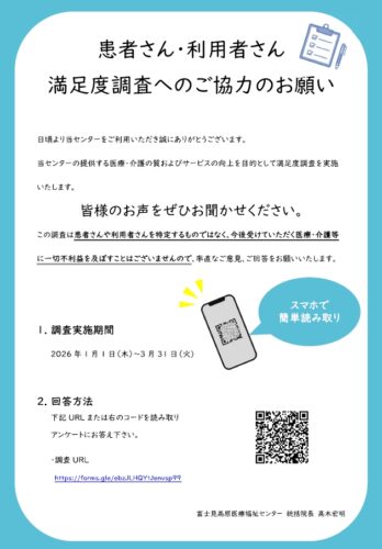 患者さん・利用者さん 満足度調査へのご協力のお願い 2026年1月1日(木)~3月31日(火)